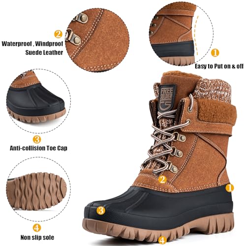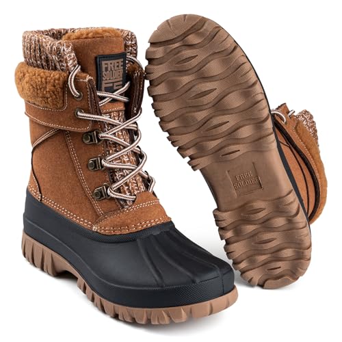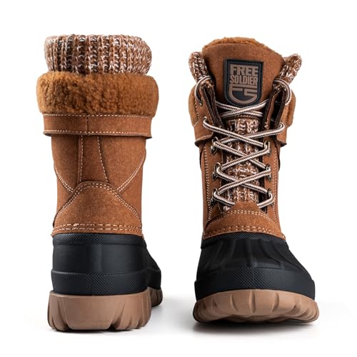 FREE SOLDIER Women’s Waterproof Winter Cold Weather Snow Boots for Women Outdoor Fashion Duck Boots Comfortable Insulated(Brown 8)